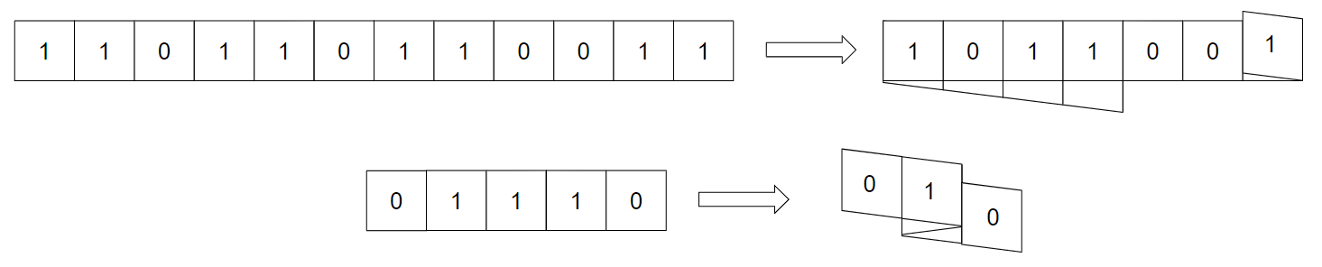 你有一条长度为 的纸带,上面写有一个二进制字符串 。你可以在任意一对相邻数字之间对纸带进行折叠。