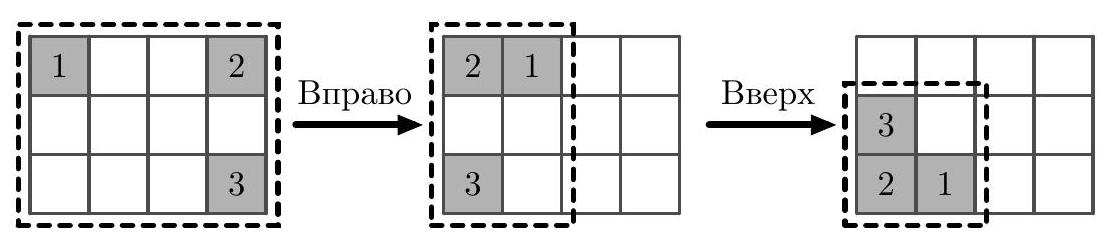 保安觉得,如果屏幕上显示画面的格子能够尽可能紧凑地排列会更方便。我们把包含所有画面的网格子矩形的面积称为画面的紧凑度。注意,通过按钮可以改变画面的紧凑度。例如,左图画面的排列的紧凑度是 。如果按一次「右」按钮,再按一次「上」按钮,画面的紧凑度就会变成 。